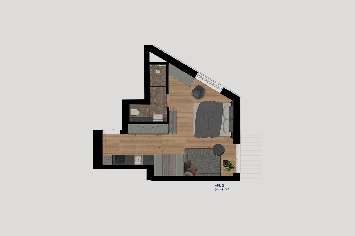 - Modernes, offenes Studio mit hochwertigem Doppelbett